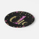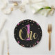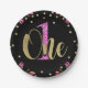 Pink Glitter ONE Black Floral 1st Birthday Party Paper Plate