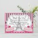 Ooh La La, it's going to be a stunning Paris themed party with this gorgeous invitation! Features a pink glittery background, pink stripes and polka dots. Two large macarons adorn the sides and an eiffel tower is in the background of the text. This is sure to make your elegant french parisian party a hit!