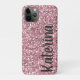 Pink Glitter Personalised with Your Name. Girly, Pretty Mobile Phone iPhone 11 Pro Case.