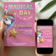 Pink Glitter rainbow unicorn 4th birthday Invitation