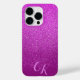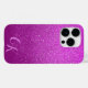 Design features glittery pink shimmer on a dark pink background. Personalise with your initials.