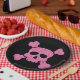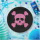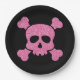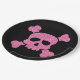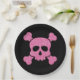 Pink Glitter Skull and Crossbones on Black Paper Plate