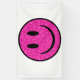 A pink glitter textured digital smiling face.