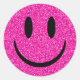 Pink Glitter Smile Face Classic Round Sticker