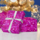 Glamourous glitter wrapping paper with vibrant, colourful glassy pieces in deep pink, fuchsia and violet colours - photo print.