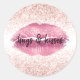 Pink Glitzy Glitter Lips Classic Round Sticker