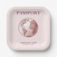 Pink Globe Passport Travel Baby Shower Paper Plate