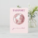 Pink Globe Passport Travel Baby Shower Thank You Card