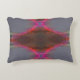 Large brown rounded diamond shapes with decorative details and glowing pink edges. Shades of purple and glowing red hot dots on grey blue background. A modern abstract pattern with ethnic influence.
