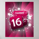 Pink Glowing Swirls and Stars Sweet 16 Poster