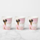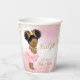 Princess baby shower paper cups with adorable African American princess baby girl with cute afro puff hair, crown and tutu on a pretty pink and gold glitter background. These princess baby shower paper cups are easily personalised for your event by adding the text of your choice. You can delete the it's a girl graphic.