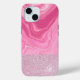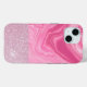 Pink Gold Agate Glitter Monogram iPhone 15 Case. Cute girly pink phone case to customise with name, or last name initial