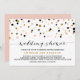 Modern and festive wedding shower invitation featuring blush pink, copper-gold, black confetti dots. Personalise by adding names, date, time and other event details.