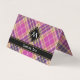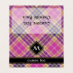 Pink, golden yellow and blue tartan design. Seamless pattern. Custom text and monogram.