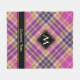 Pink, golden yellow and blue tartan design. Seamless pattern. Custom text and monogram.