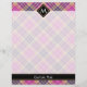 Pink, golden yellow and blue tartan design. Seamless pattern. Custom text and monogram.