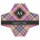 Pink, golden yellow and blue tartan design. Seamless pattern. Custom text and monogram.