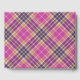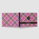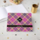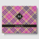 Pink, golden yellow and blue tartan design. Seamless pattern. Custom text and monogram.