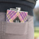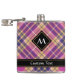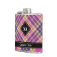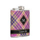 Pink, golden yellow and blue tartan design. Seamless pattern. Custom text and monogram.