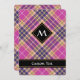 Pink, golden yellow and blue tartan design. Seamless pattern. Custom text and monogram.