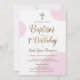Pink Gold Armenian cross girl Baptism 1st Birthday Invitation