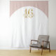Elegant muted matte millennial pink and matte gold personalised birthday photo backdrop decoration for a sophisticated and modern sweet 16th birthday or quinceanera when you enter your custom name and age text. Colours and fonts can be changed, just click 'customise further.'