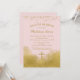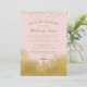 An elegant pink and gold baptism invitation featuring gold glitter confetti at the top and gold glam bling at the bottom with a gold glitter cross.