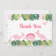 This adorable birthday thank you card features tropical watercolor leaves with gold glitter leaf embellishments and pink dinosaurs.