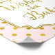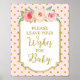 Wishes for baby sign poster for baby shower in light blush pink and gold dots pattern with gold border, rustic pink and peach watercolor flowers and handwritten style lettering.