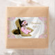 Ethnic girl baby shower water bottle labels with adorable ethnic baby girl with string of pearls sitting on a pair of gold high heel shoes on a beautiful pink and gold satin background. These cute baby shower water bottle labels are easily customised for your event with your text in the font style of your choice. These are a printed design with no real glitter, pearls, satin, etc. These labels are not waterproof.