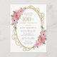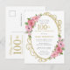 Pink Gold Floral 100th Birthday Party Invitation Postcard