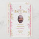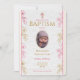 Celebrate your child's special day with this elegant and minimalist invitation. The soft pink background is complemented by delicate gold floral accents, creating a timeless and sophisticated design. The simple cross motif adds a touch of religious symbolism.