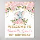 Pink Gold Floral Elephant 1st Birthday Welcome Poster