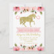 This sweet girl's faux gold glitter horse and a watercolor floral arrangement is ideal for a little girl who loves horses. It features a faux gold glitter silhouette of a horse and two pink horse shoes on a white background. The back of the invitation is a faux watercolor wash with a white polka dot pattern. More horse invitations are available at the store so please visit. This girl's faux gold glitter horse and floral birthday invitation is ready to be personalised.