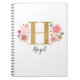 Pink Gold Floral Monogram Letter H Notebook
