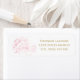 Elegant wedding return address labels in pink, champagne gold, and white colour scheme feature a peony flower and custom address text.
