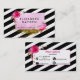 chic black white stripes business cards FAUX gold foil , Boho wedding planner, Vintage Floral business cards, Floral Event Planner Business Cards, Pink Flowers, Even Stylist Business Cards with contact icons on back.