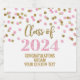 Graduation party custom champagne bottle labels class of 2024 with pink and gold glitter pattern confetti.