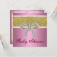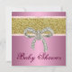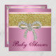 Pink Gold Glitter Diamond Bow Baby Shower Invite