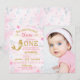 Pink & Gold Glitter Mermaid Photo 1st Birthday Invitation