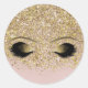 Pink & Gold Glitter Modern Gold Makeup Eyelashes Classic Round Sticker