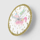 Pink & Gold Glitter Unicorn Girls Bedroom Nursery Round Clock