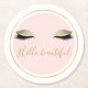 Pink Gold Glitzy Black Eyelashes Round Paper Coaster