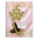 Woman's birthday party guest book with elegant gold high heel shoes, balloons and champagne glass on a beautiful pink and gold satin swirl background. You can add the text of your choice to personalise, and you can remove the background to add your own colour. This is a printed design with no real glitter, satin, jewels, etc.