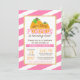 Modern little pumpkin second birthday invitations. Featuring diagonal pink and white stripes, faux gold glitter border and orange watercolor pumpkins. A trendy invite for a fall themed birthday party.