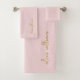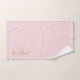 Pink Gold Minimalist Script Signature Monogram Bath Towel Set