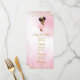Princess baby shower menu with adorable African American ethnic princess baby girl wearing a cute pink outfit and string of pearls on an elegant pink and gold background. These cute princess baby shower menus are easily customised for your event by simply adding your details in the font style and layout of your choice.