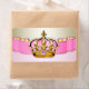 Princess water bottle labels with beautiful pink and gold jewel crown on a light pink and gold background. These pretty pink and gold water bottle labels are not waterproof.