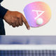 Pink, Gold and Purple Pastel Ombre Faux Glitter and Sparkle Elegant Monogram Ping Pong Paddle. This Ping Pong Paddle can be customised to include your initial and first name.