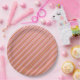 Custom paper plates for any occasion featuring double pink and gold stripes.